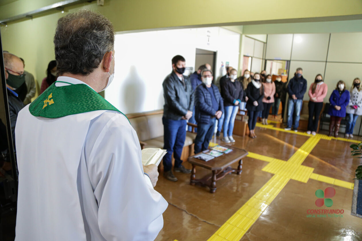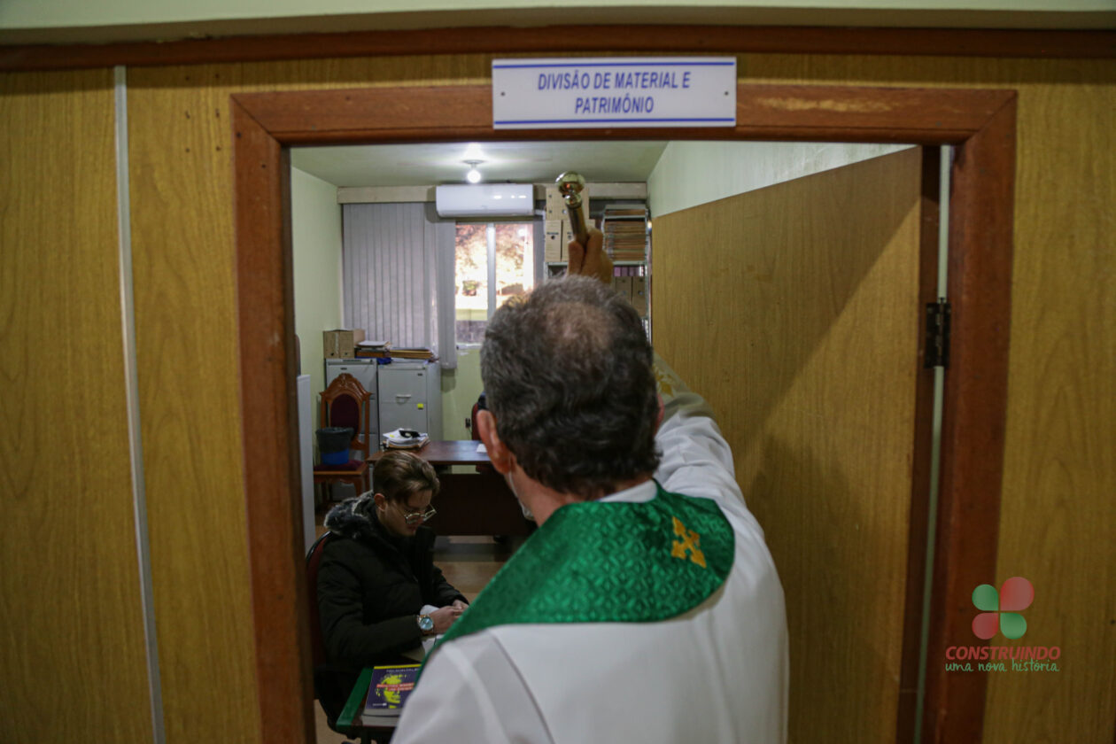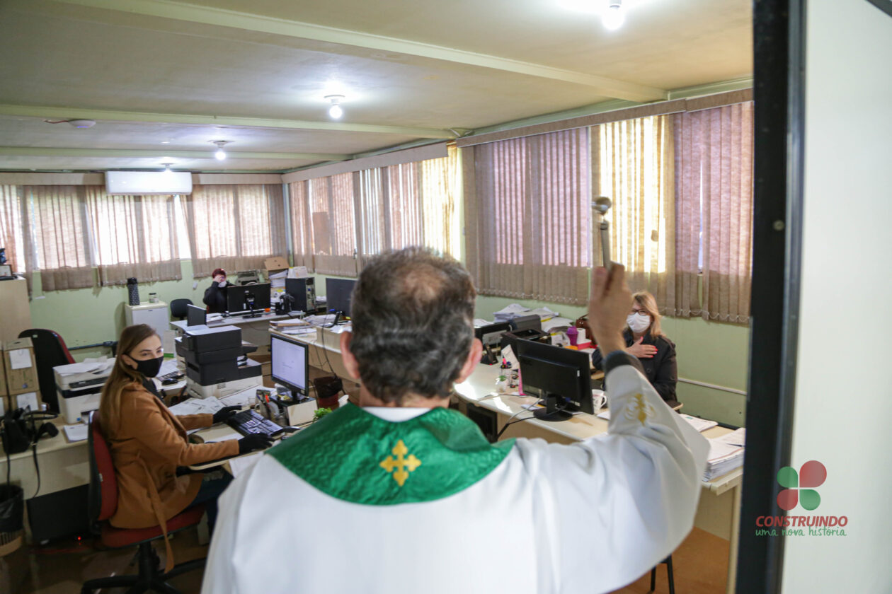 Os servidores se reuniram no prédio superior, ouviram palavras de otimismo e uma mensagem do sacerdote, com base na leitura bíblica da parábola do semeador. Foi um momento diferente, onde os funcionários pararam por alguns minutos de suas atividades para receber as bençãos.