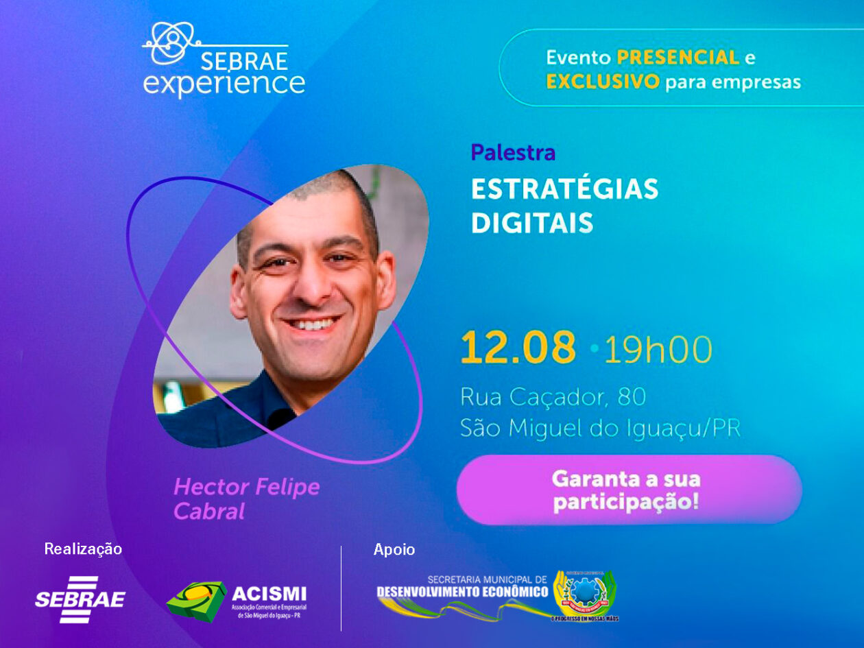 O município de São Miguel do Iguaçu vai receber nesta sexta-feira, 12 de agosto, o evento ‘Sebrae Experience: Estratégias Digitais’, que é voltado para micro e pequenas empresas da cidade.