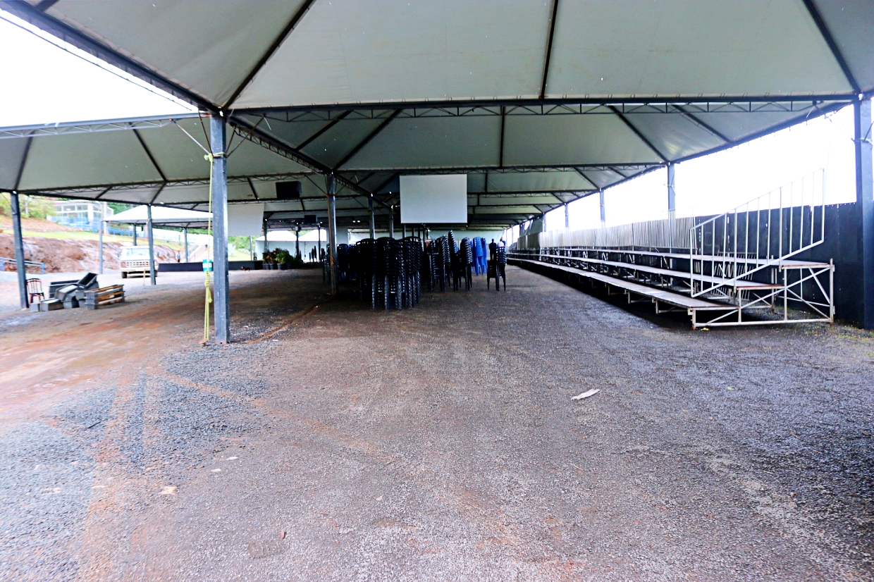 As tendas que abrigarão romeiros e fieis com as celebrações todas as noites estão recebendo os ajustes e retoques finais, com a edificação do altar, montagem das arquibancadas, sala do Santíssimo, jardinagem e colocação de cadeiras. Além do apoio da Administração Municipal, grande número de voluntários está envolvido na organização do local.