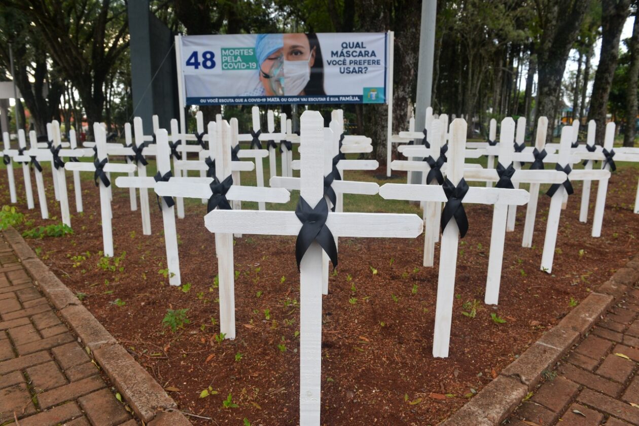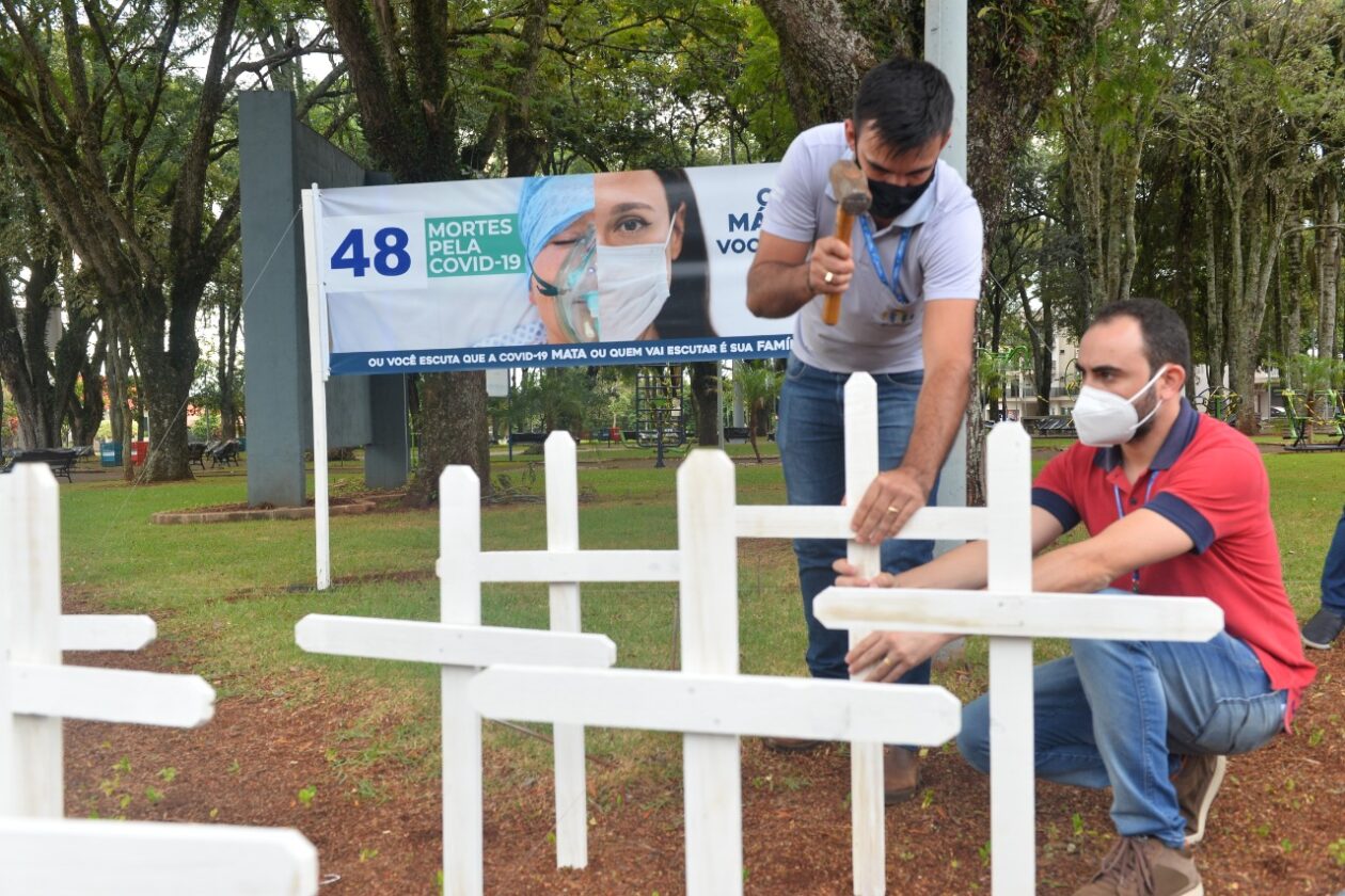 Há exatos, 365 dias, Santa Terezinha de Itaipu enfrenta à pandemia de coronavírus. Para lembrar a data, os profissionais da saúde e forças de segurança realizaram um ato de conscientização e de homenagem às vítimas da doença, na tarde desta quinta-feira, 17, em frente à Praça Silvino Dal Bó.