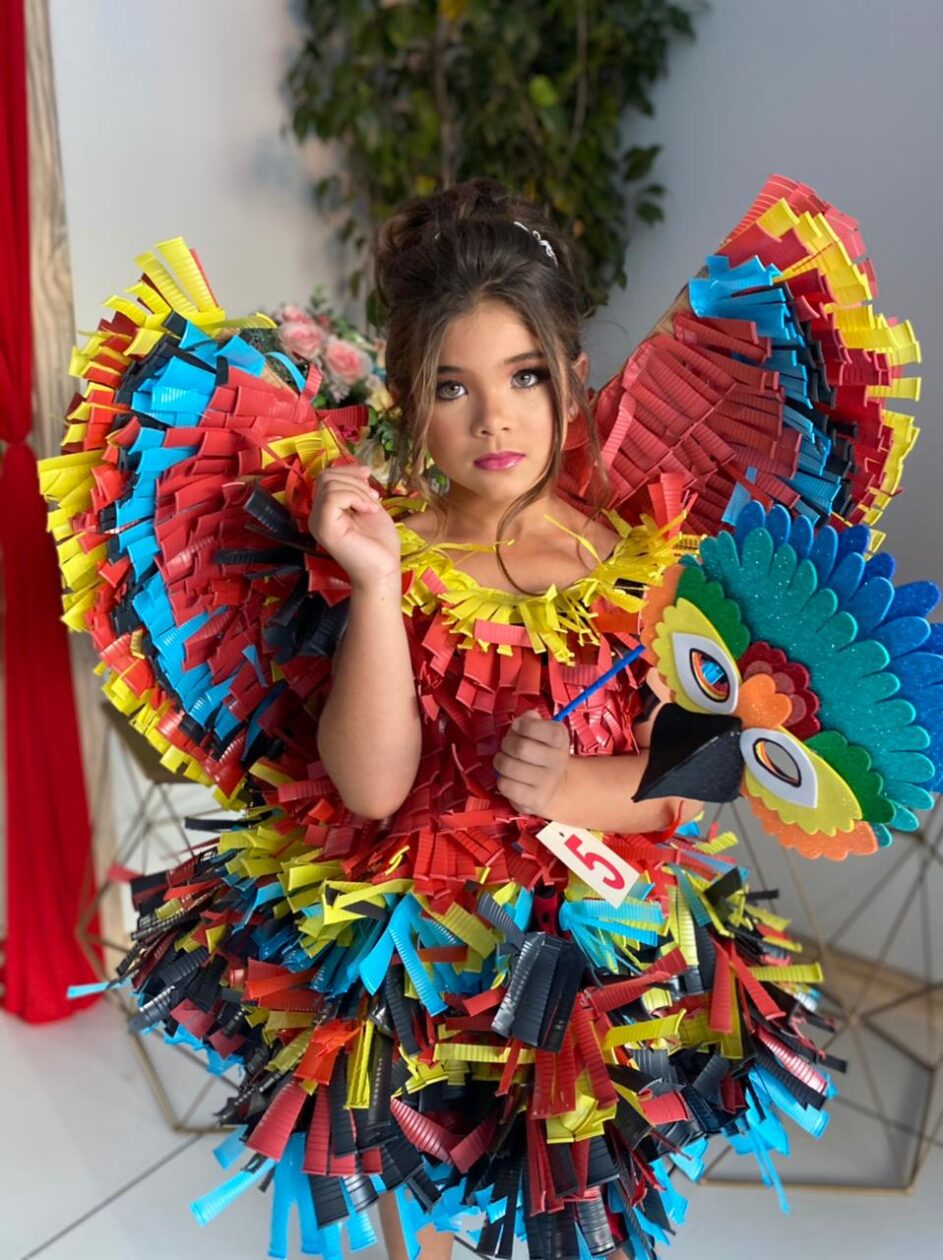 Questões como postura, desenvoltura, beleza, comportamento, pontualidade nas atividades e interação com as demais candidatas foram avaliadas no concurso. “Elas desfilaram com duas roupas diferentes. O tema foi ‘Reciclável ’, então a primeira roupa foi de Arara, confeccionada com copos plásticos descartáveis pelo preparador Junior Severo. Na segunda entrada na passarela, as candidatas desfilaram com vestido de gala.