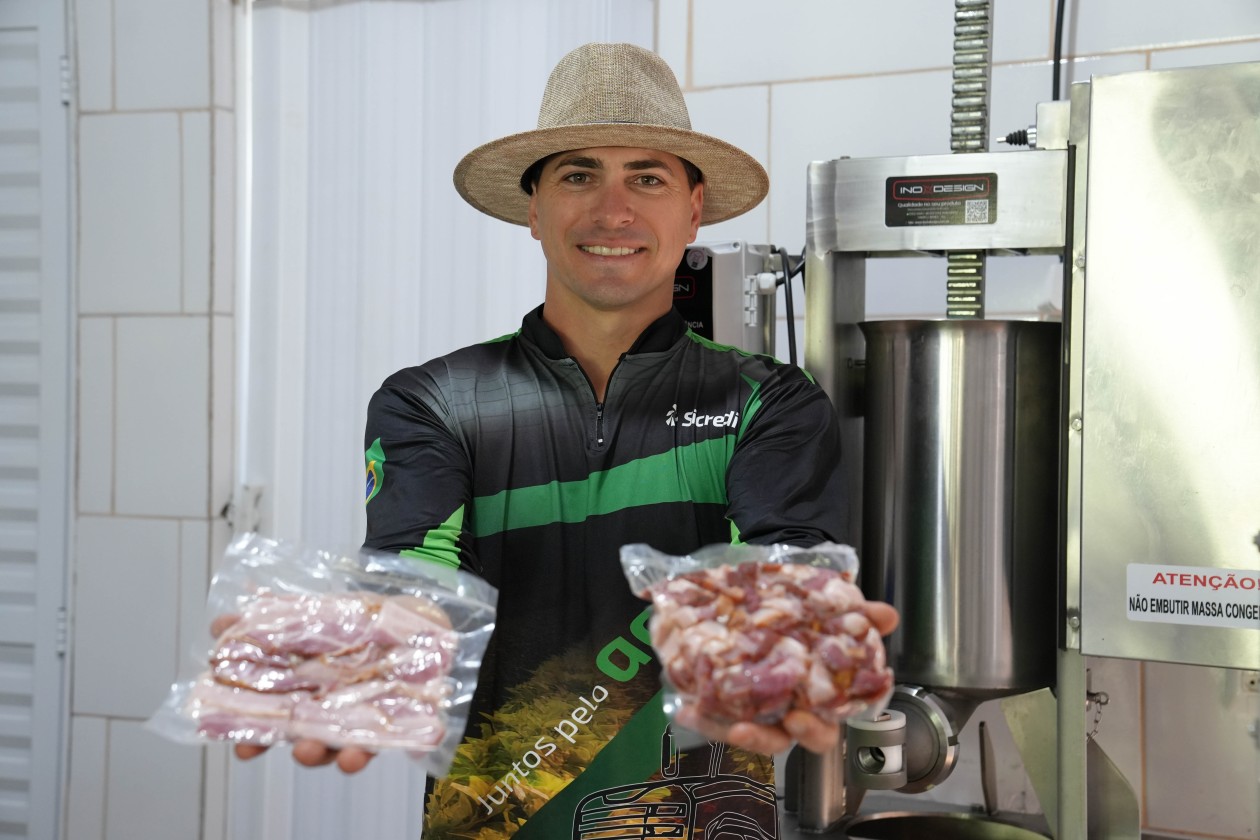 “Com o objetivo de retomar esse sonho, decidi reestruturar a agroindústria com uma nova proposta, alinhada à minha formação profissional e às oportunidades do mercado. Com uma visão empreendedora e foco em inovação, passei a direcionar o projeto para o beneficiamento de proteína bovina e suína, iniciando a produção de embutidos e carnes processadas. Para viabilizar esse novo momento do empreendimento, busquei apoio financeiro e orientação junto à Sicredi Vanguarda. Com o suporte da cooperativa, contratei um investimento rural com recursos próprios e equalização de juros via Pronaf, o que tornou possível executar toda a reestruturação do negócio”, explica Liniker Biondo.