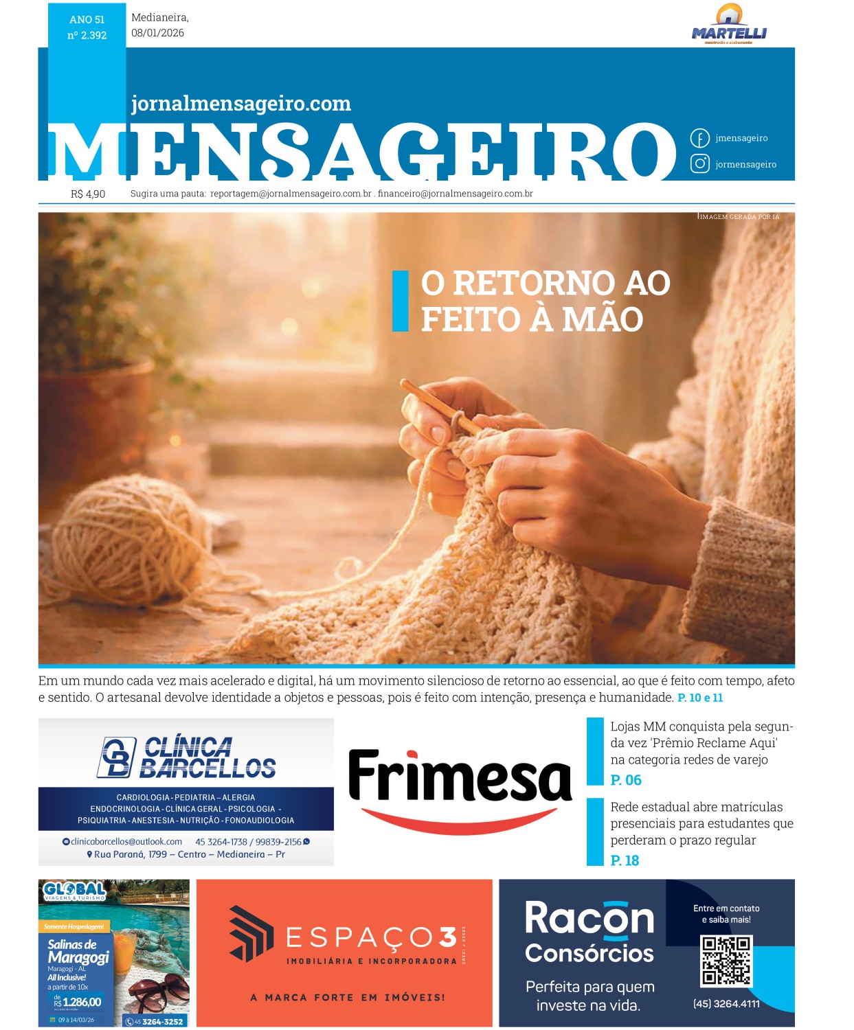 Receba O novo MENSAGEIRO em sua casa toda quinta-feira: